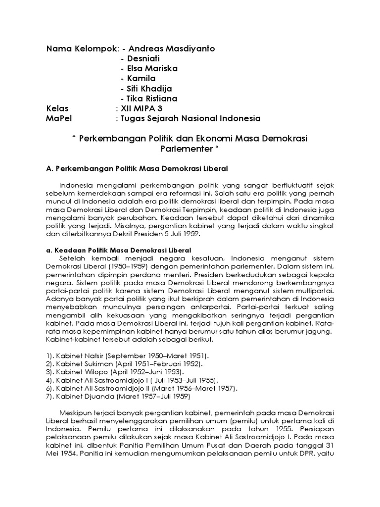DOC) Kabinet pada Masa Demokrasi Liberal | Niken Yulianti …