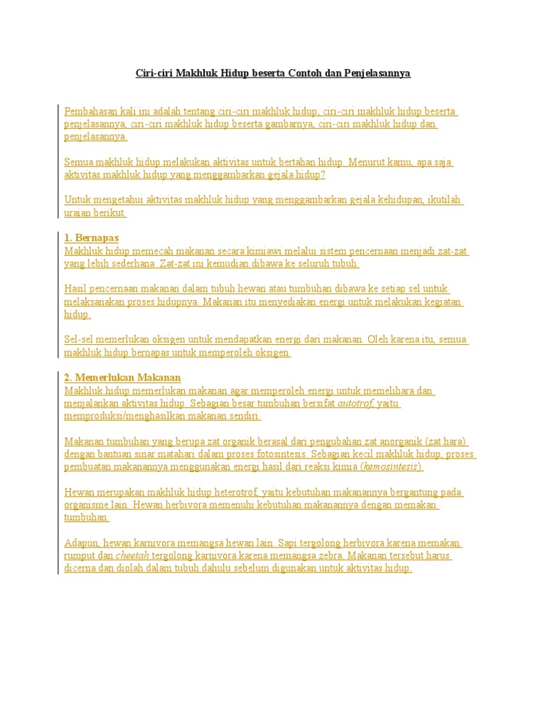 ciri-ciri makhluk hidup (the characteristics of living things …