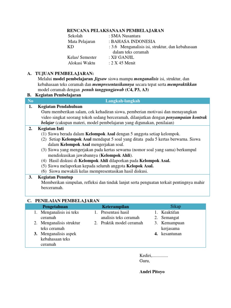 Rpp revisi 2017 bahasa indonesia wajib kelas 11 sma