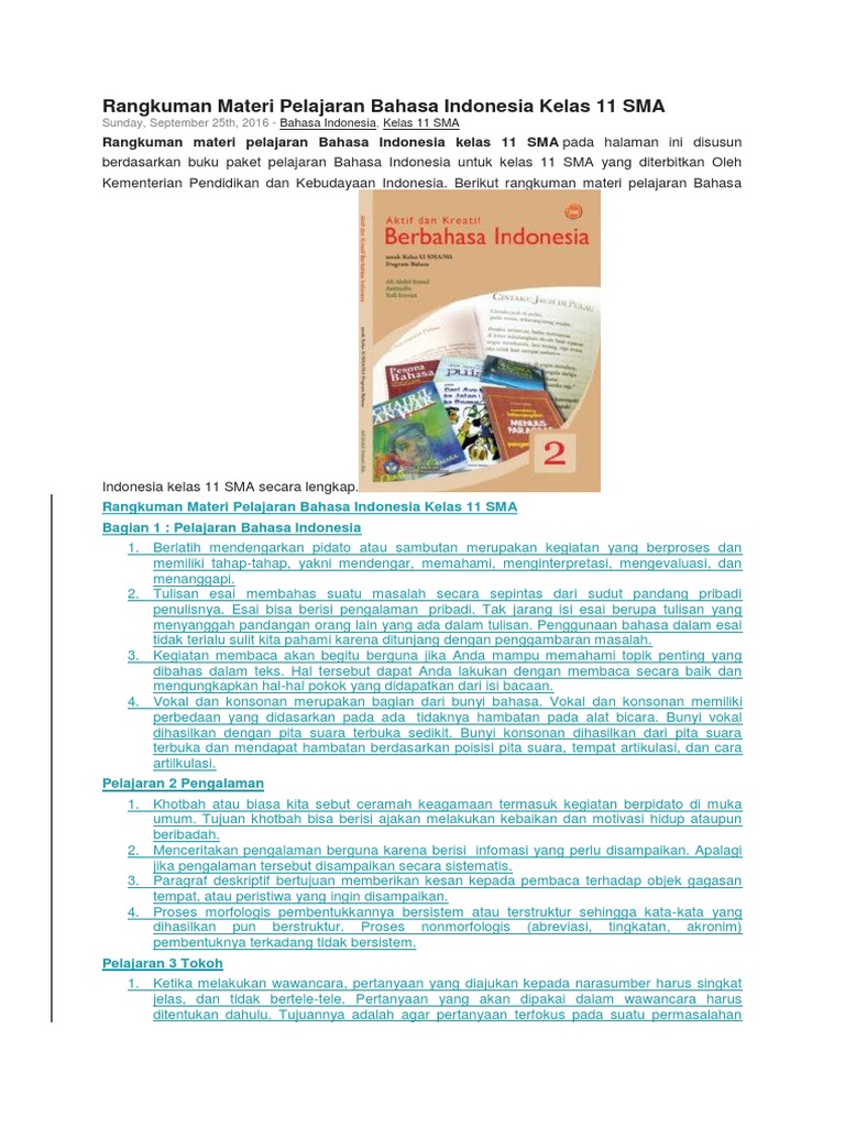 Ringkasan Materi Bahasa Indonesia Kelas 11 (Lengkap dan Padat) - Mata Pendidikan