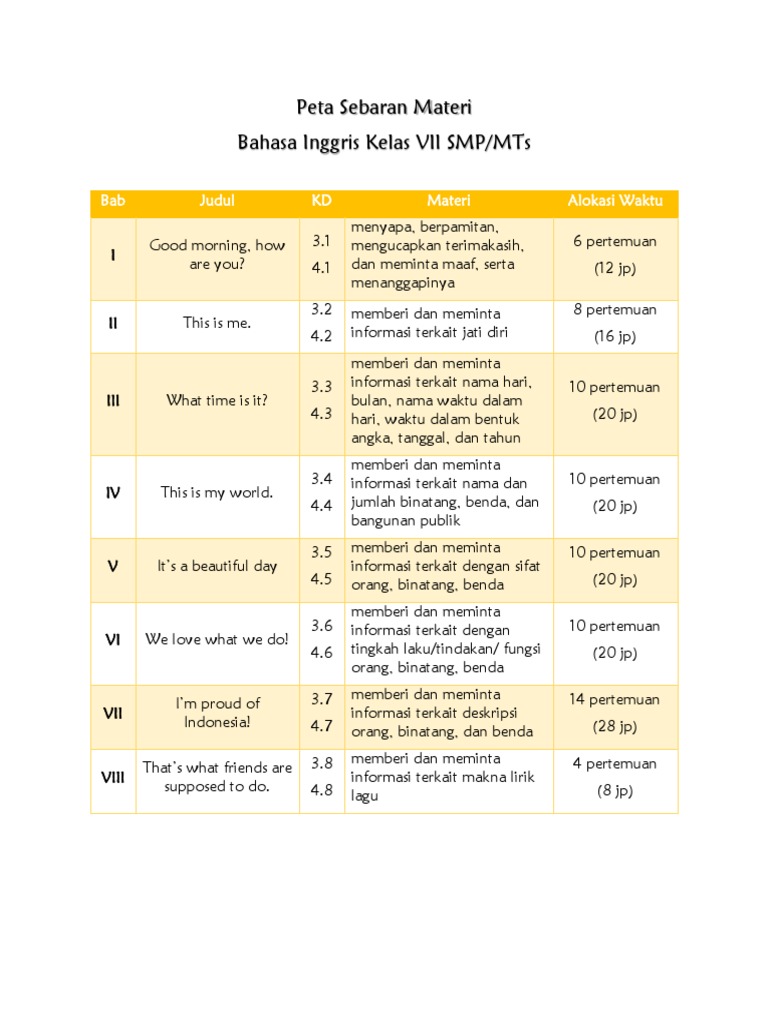 Mapping Materi Bahasa Inggris SMP MTs Kelas VIII | BAHASA INGGRIS …