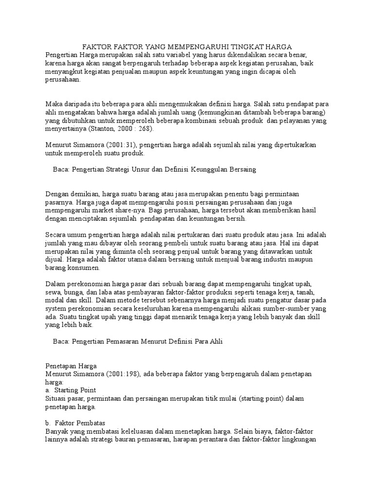 Faktor Faktor Yang Mempengaruhi Tingkat Harga