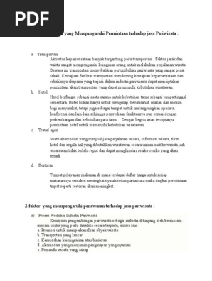 Faktor-faktor yang Mempengaruhi Permintaan terhadap jasa Pariwisata :