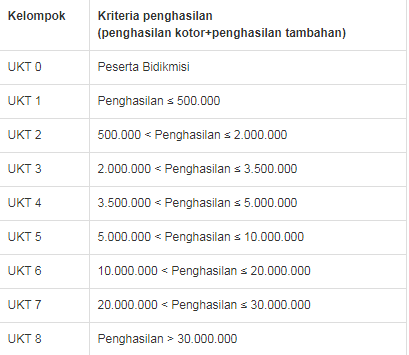 Berikut Pembagian Ukt Berdasarkan Gaji Orang Tua