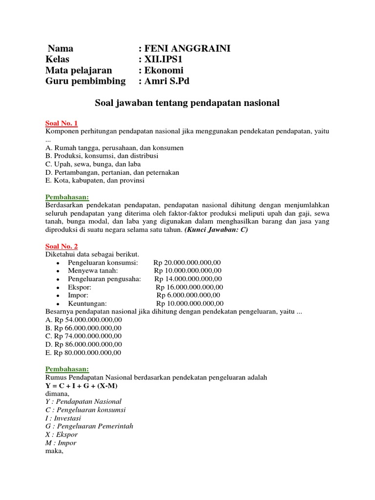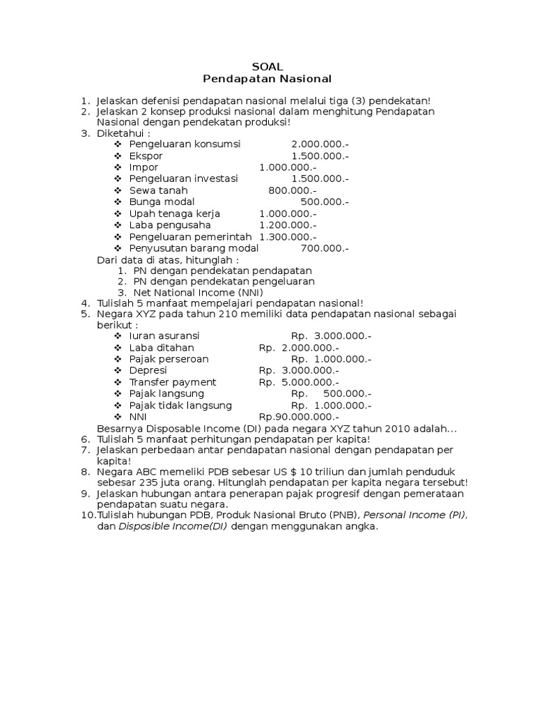 DOC) Soal Pendapatan Nasional Ekonomi | Leon Ta - Academia.edu