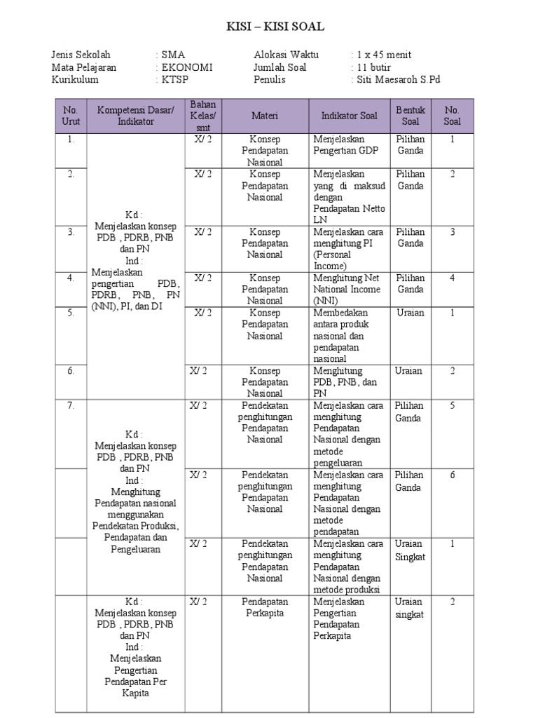 Soal Ekonomi Tentang Pendapatan Nasional Dan Jawabannya - Guru Paud