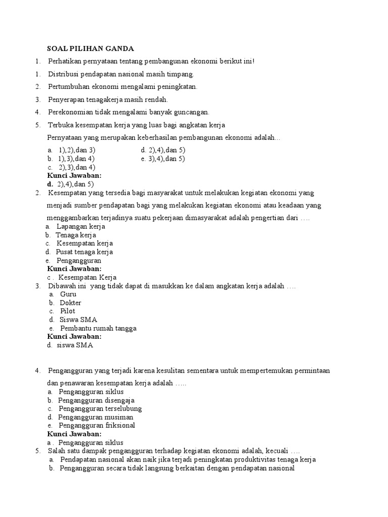 Contoh Soal Dan Jawaban Pendapatan Nasional Pilihan Ganda - Dunia …