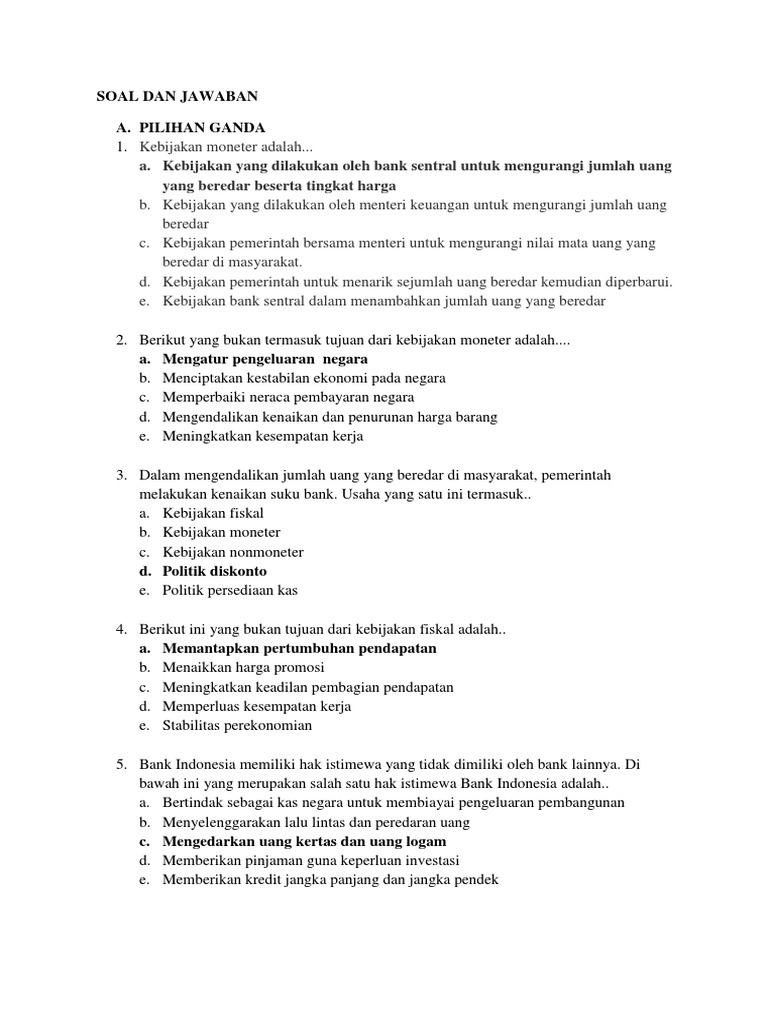 Contoh soal pengantar makroekonomi.docx - SOAL A PILIHAN GANDA 1 …