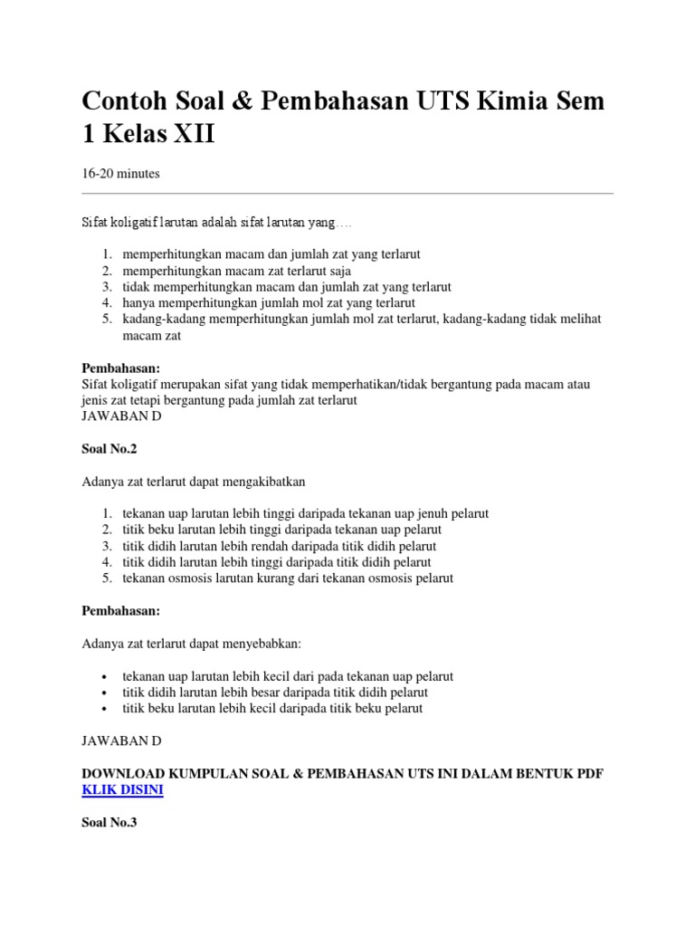 Soal Dan Pembahasan Sifat Koligatif Larutan Pdf – IlmuSosial.id
