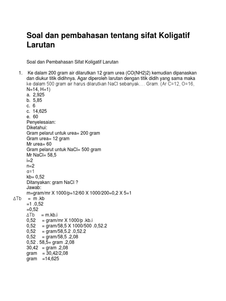 Soal Dan Pembahasan Kimia Sifat Koligatif Larutan Pdf – Blog …