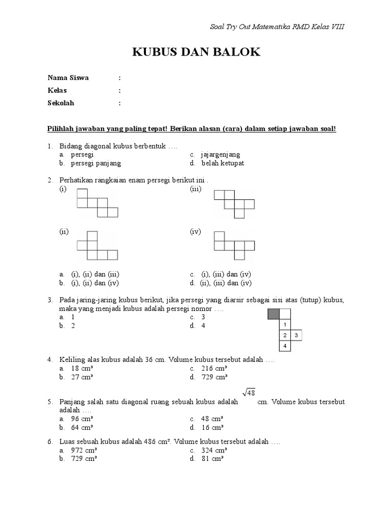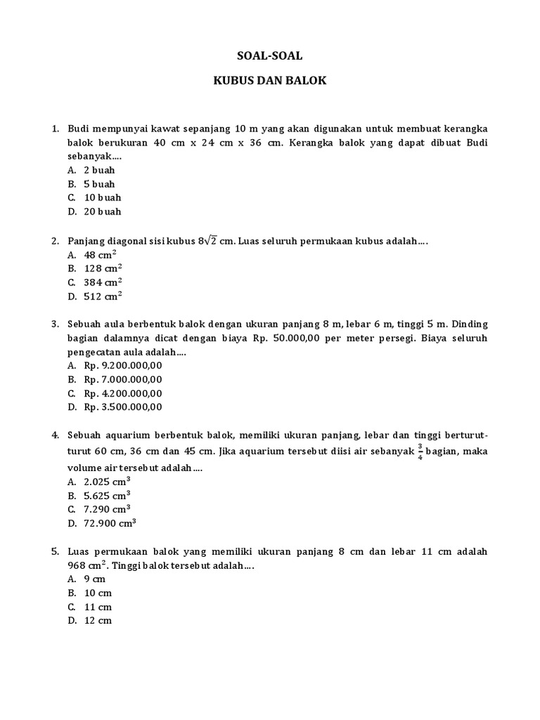 Contoh Soal Matematika Kelas 8 Kubus Dan Balok - Contoh Soal Terbaru