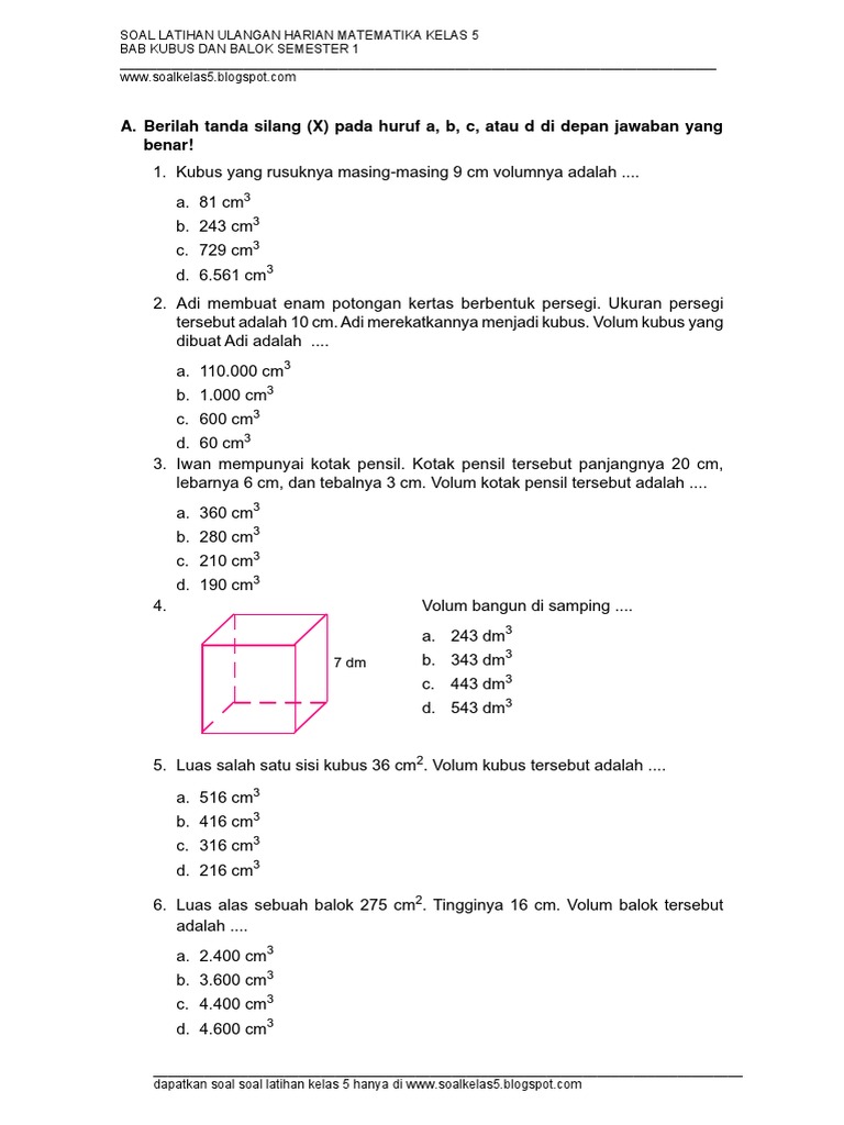 Soal Matematika Sd Kelas 6 Luas Dan Volume - Dunia Sekolah