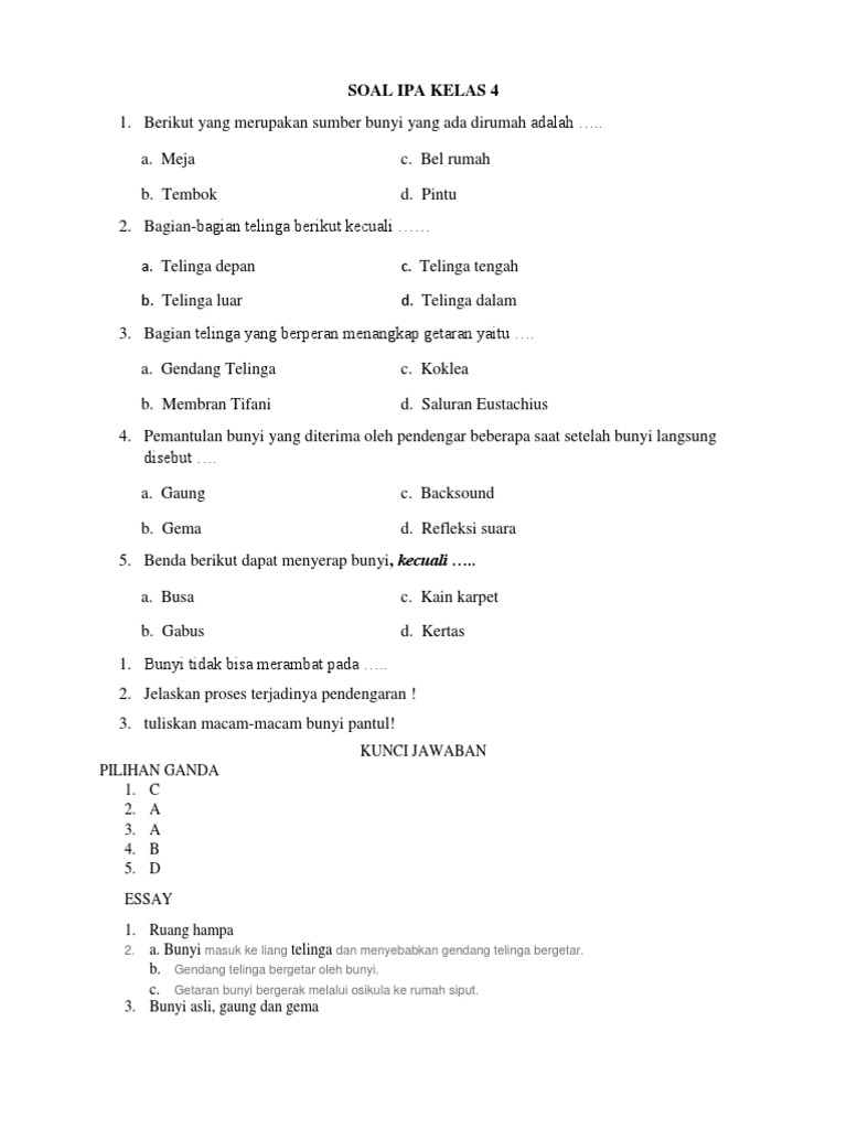 Soal Ipa Kelas 4 Tentang Bunyi Dan Kunci Jawaban - Guru Galeri
