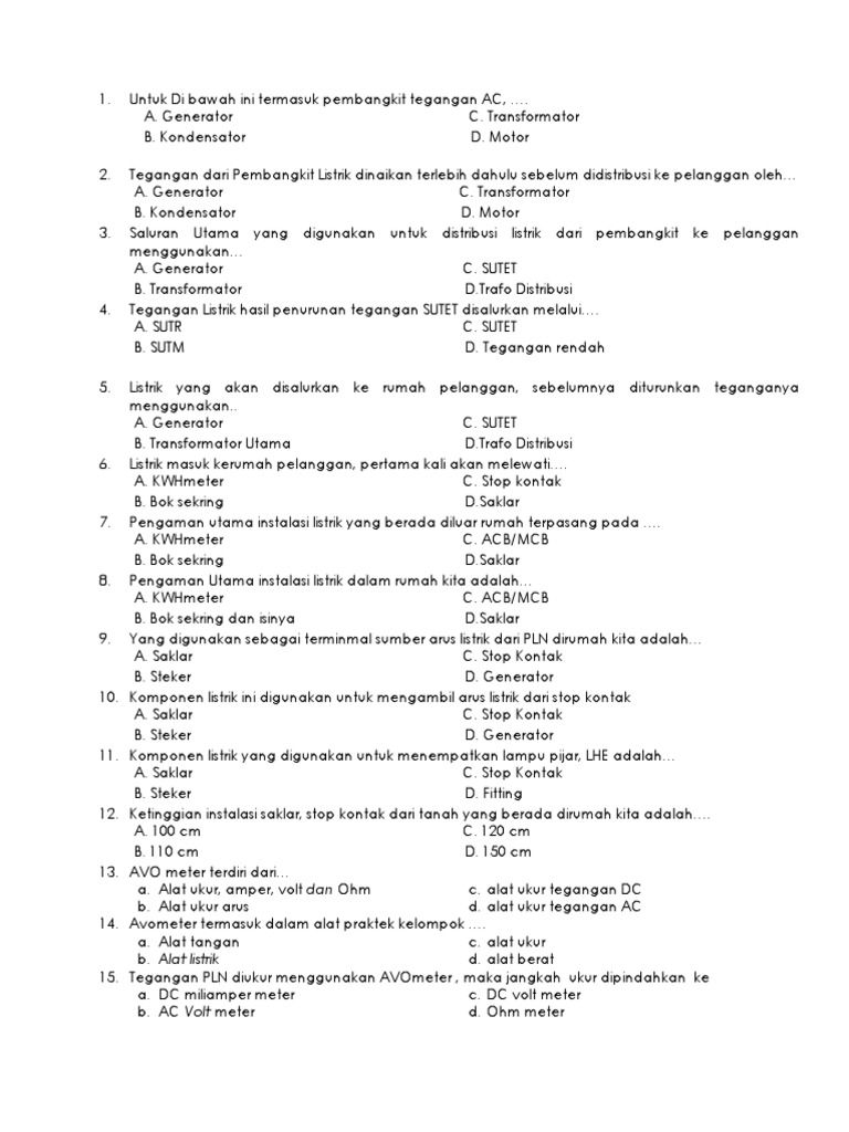 Soal latihan Prakarya -rekayasa kelas 9 tahun 2015-2016