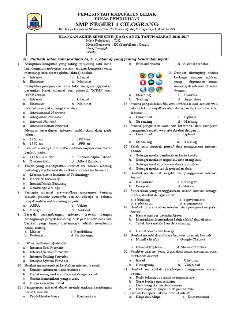 Soal Tik Kelas 9 Semester 1 Dan Kunci Jawaban 2018 – IlmuSosial.id