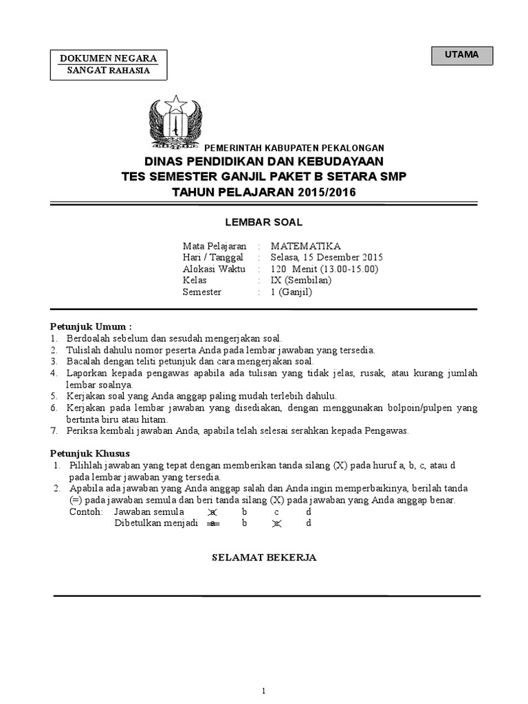 Soal Uas Smp Kelas 9 2016