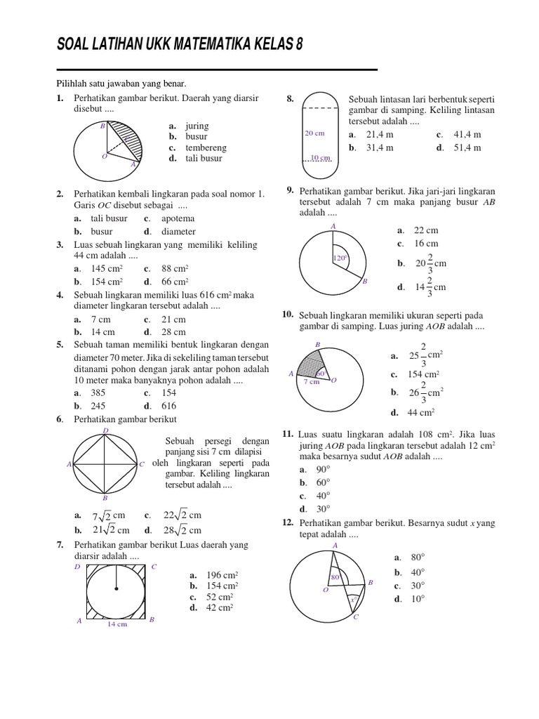 SOAL LATIHAN UKK MATEMATIKA KELAS VIII SOAL .Matematika Kelas VIII …