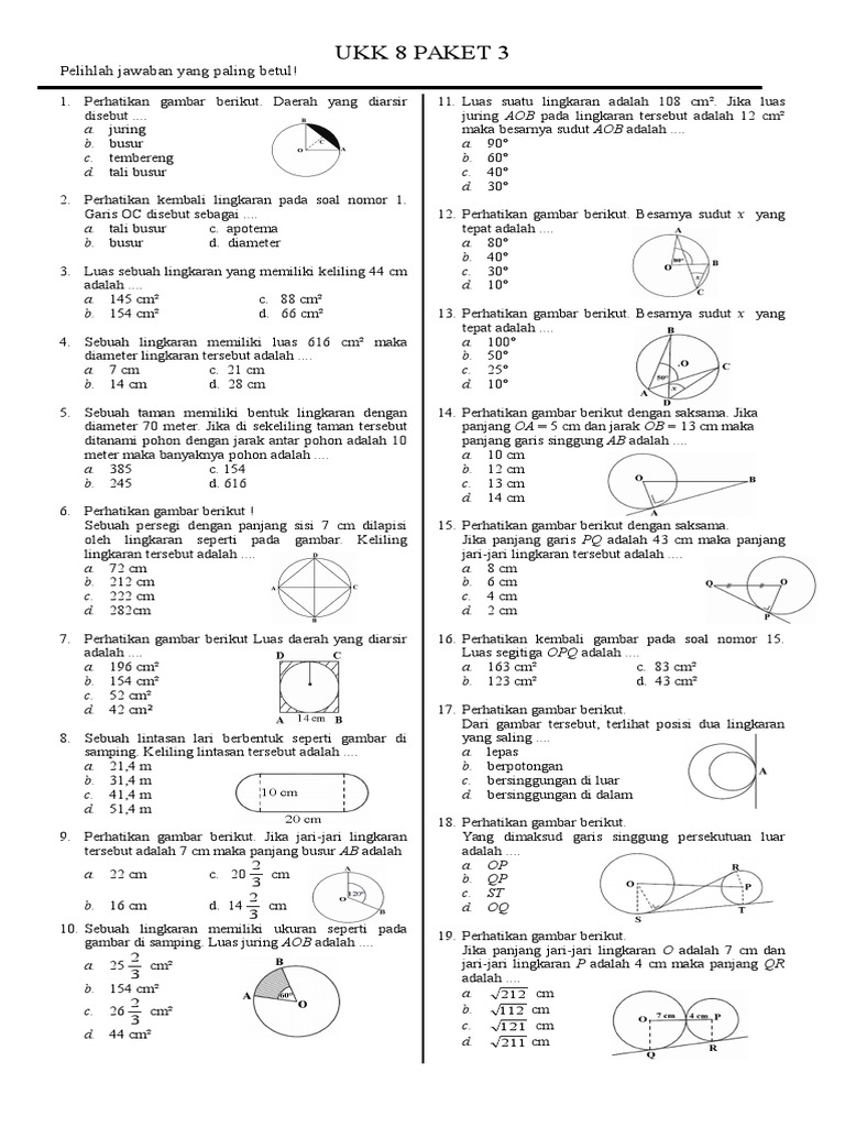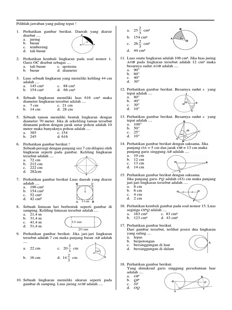 Soal Luas dan Keliling Lingkaran plus Kunci Jawaban ~ Juragan Les