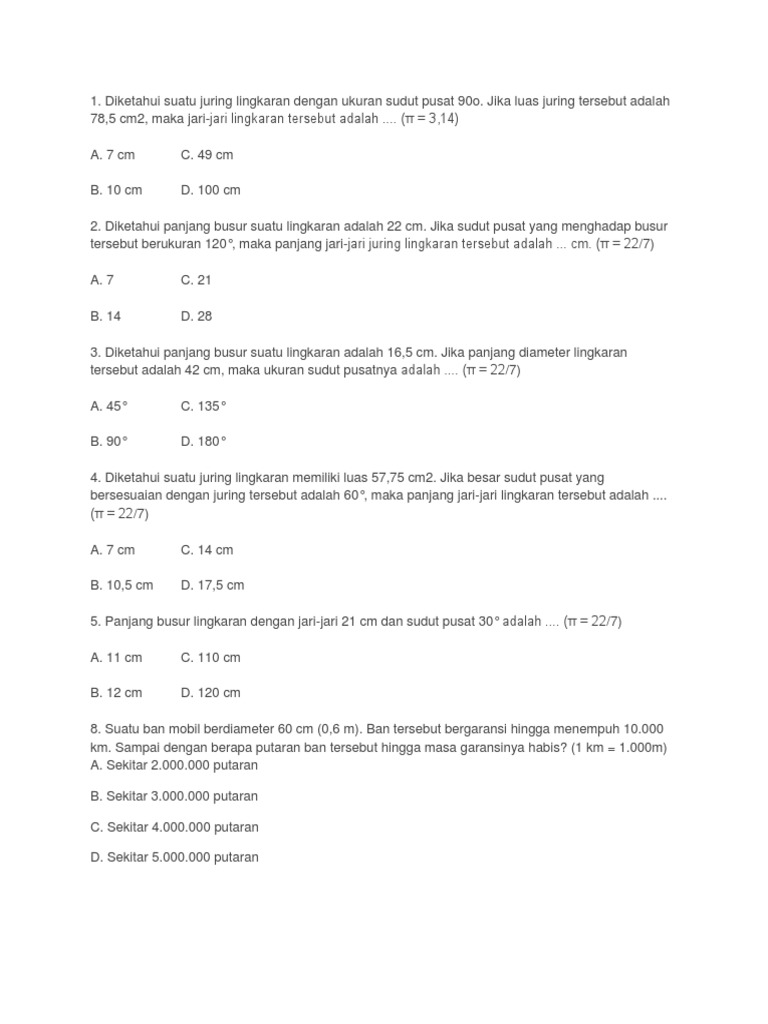 1.Diketahui panjang Busur suatu lingkaran adalah 22 cm. Jika sudut …