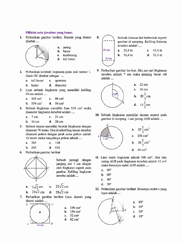 Kumpulan Soal Bahas Luas dan Keliling Lingkaran